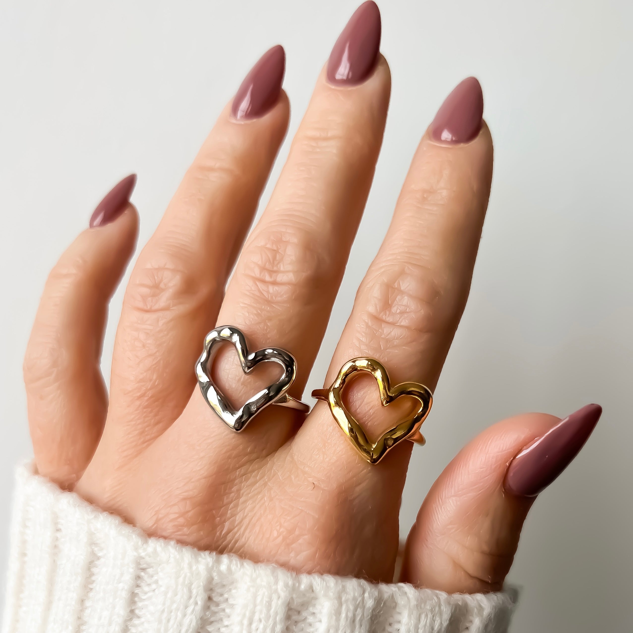 The beautiful heart ring is a jewellery must have. Available in both gold & silver.