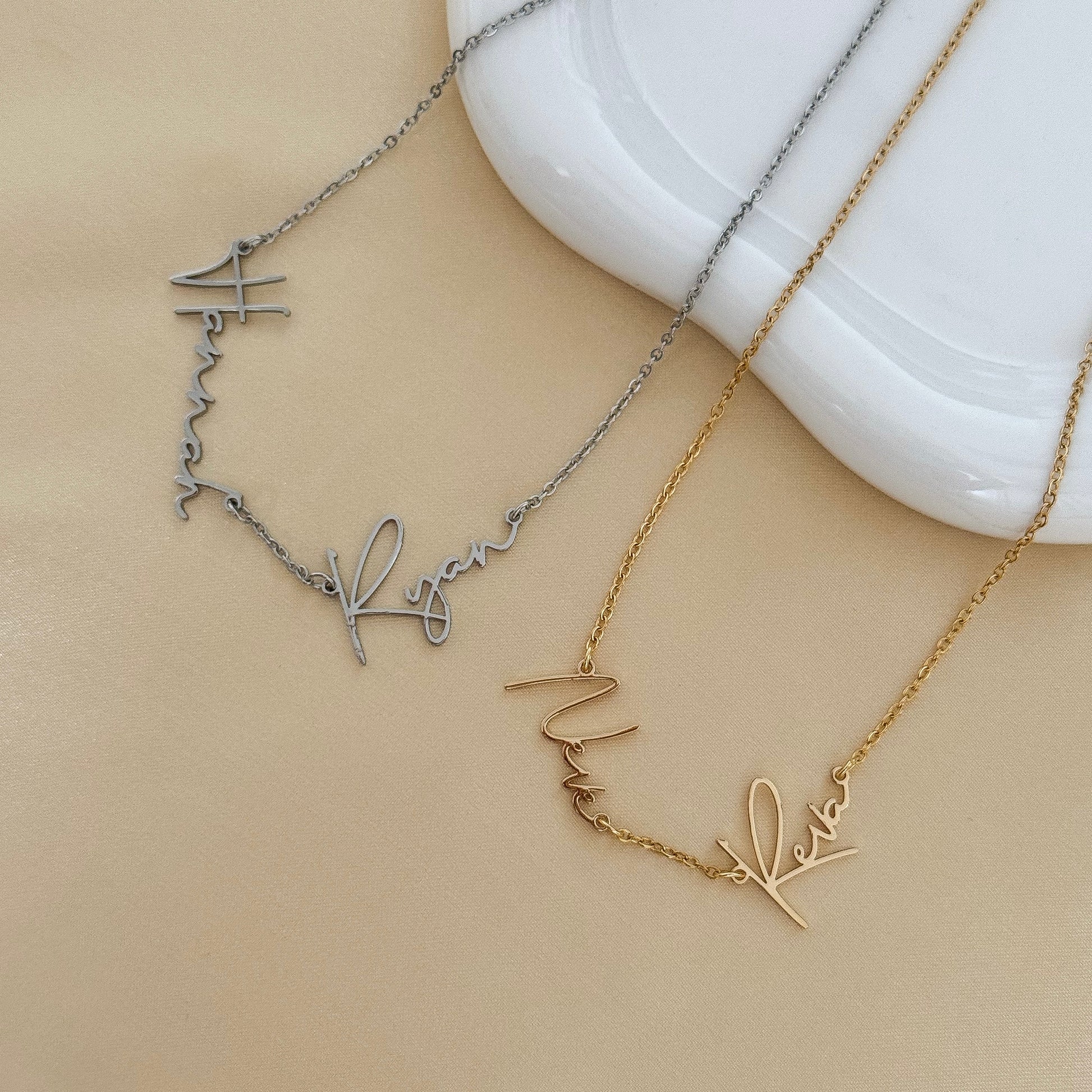 The iconic Personalised Two Name Necklace enables you to create the ultimate signature accessory and make the perfect gift! The dreamy Personalised Necklaces are totally unique to you. Play with up to 8 characters per name to create a classic bespoke Personalised Necklace that’s all about you or someone special.