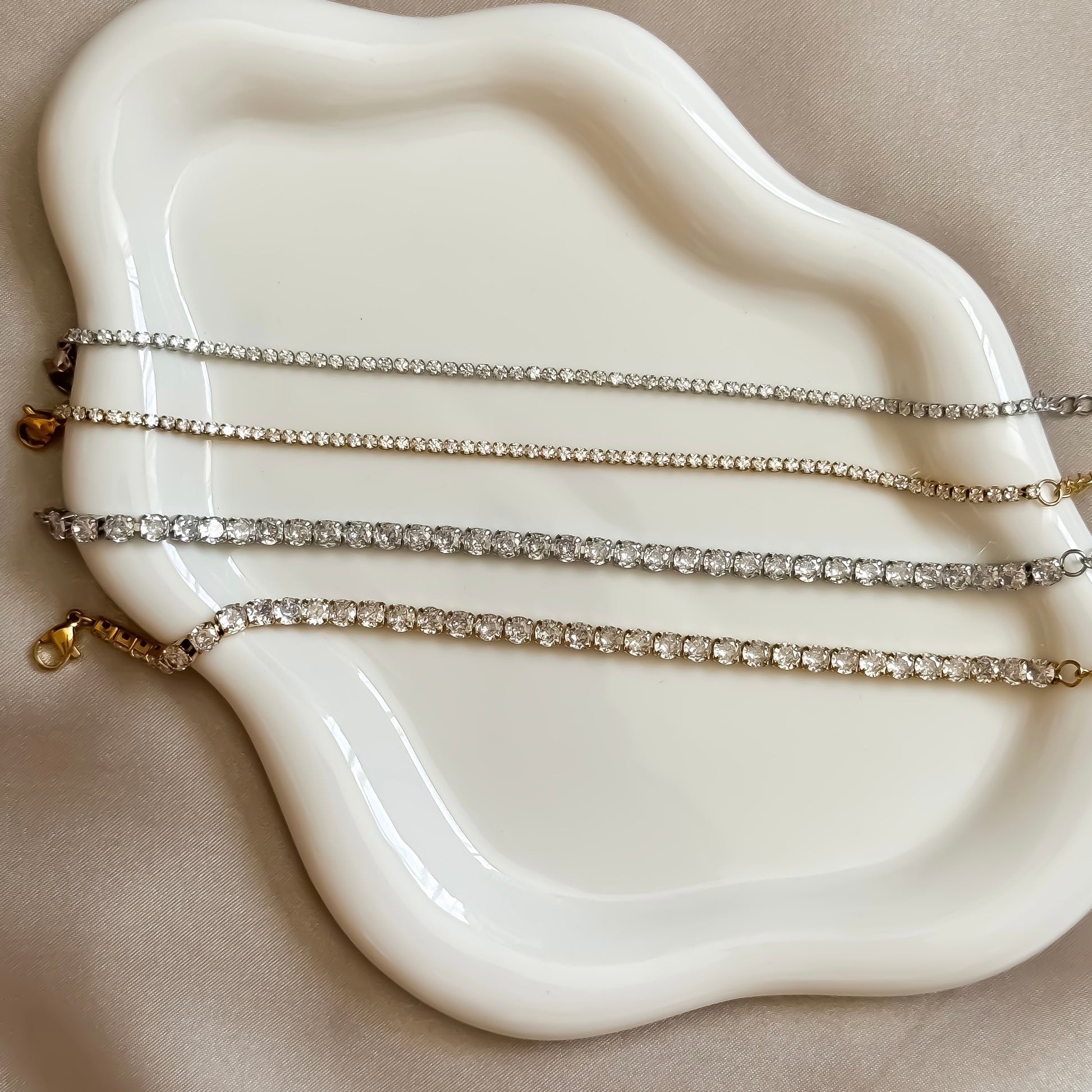 The Tennis Bracelet is a must have for any style. Available in both gold and silver.
