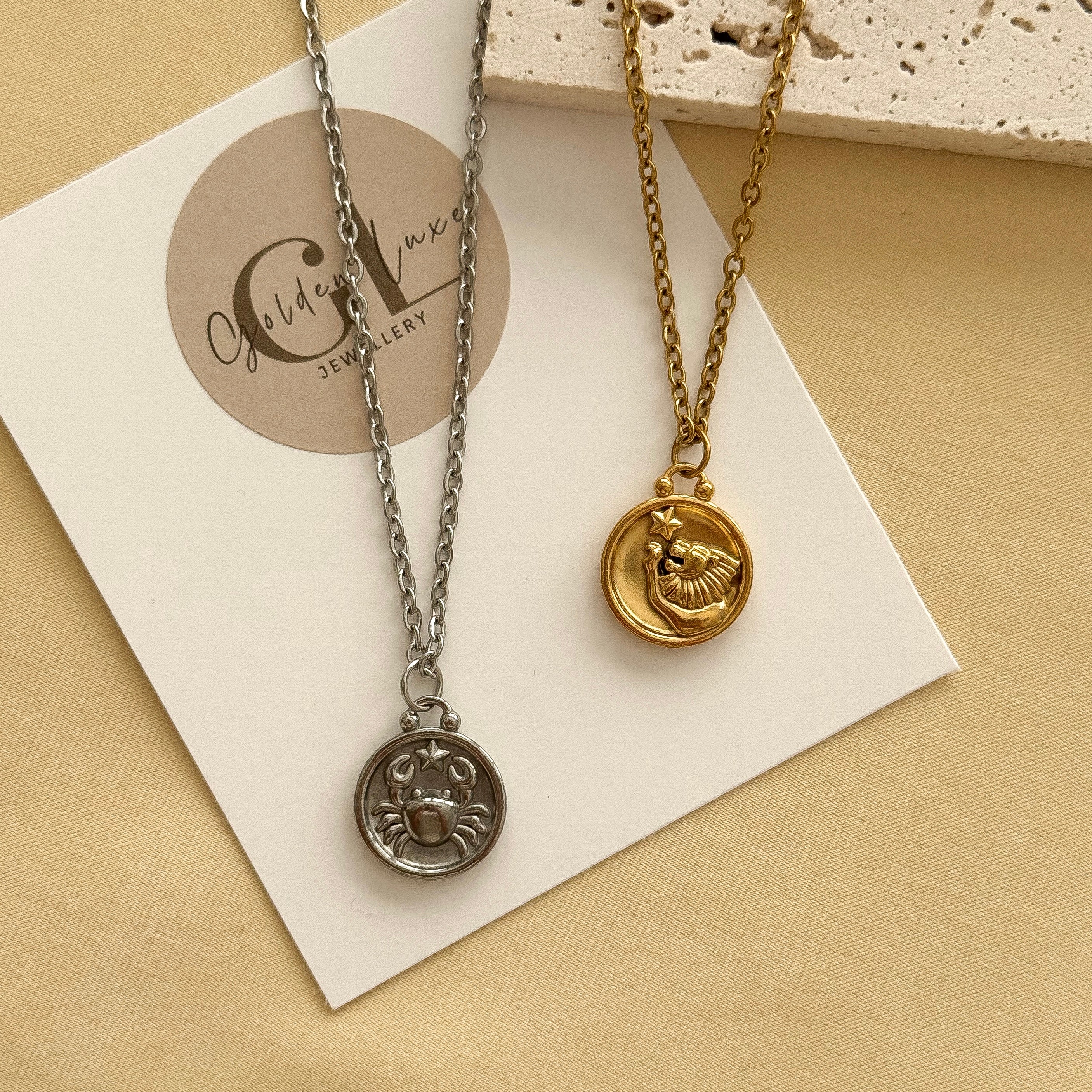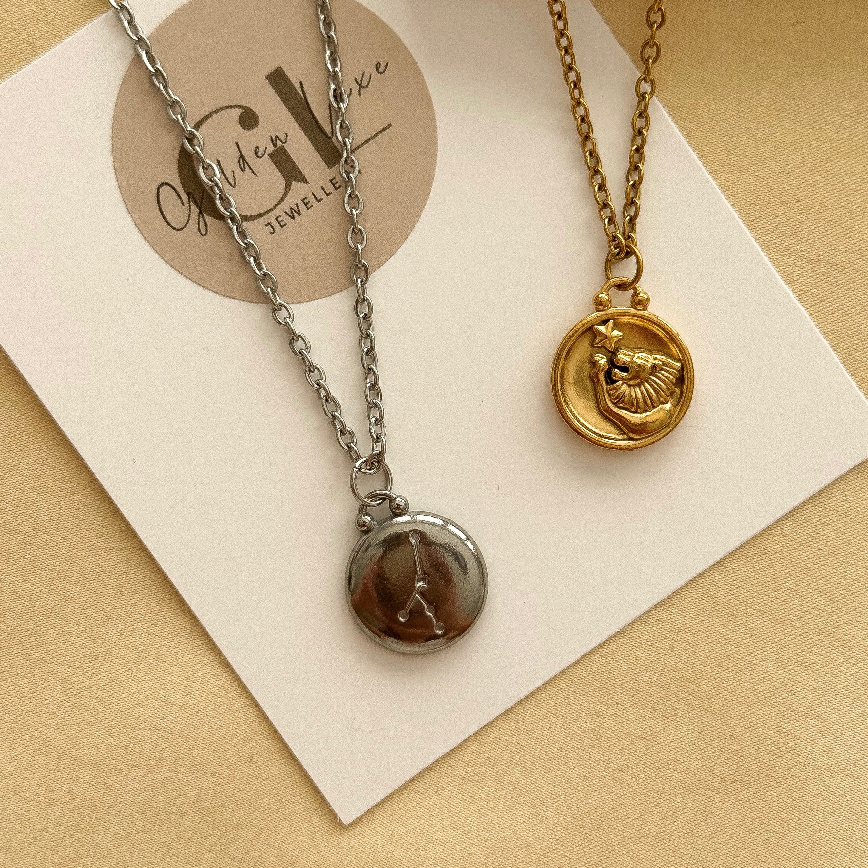 Discover your unique style with our Zodiac Necklace. Featuring a zodiac charm. Available in both gold and silver, this necklace is the perfect accessory for any outfit.