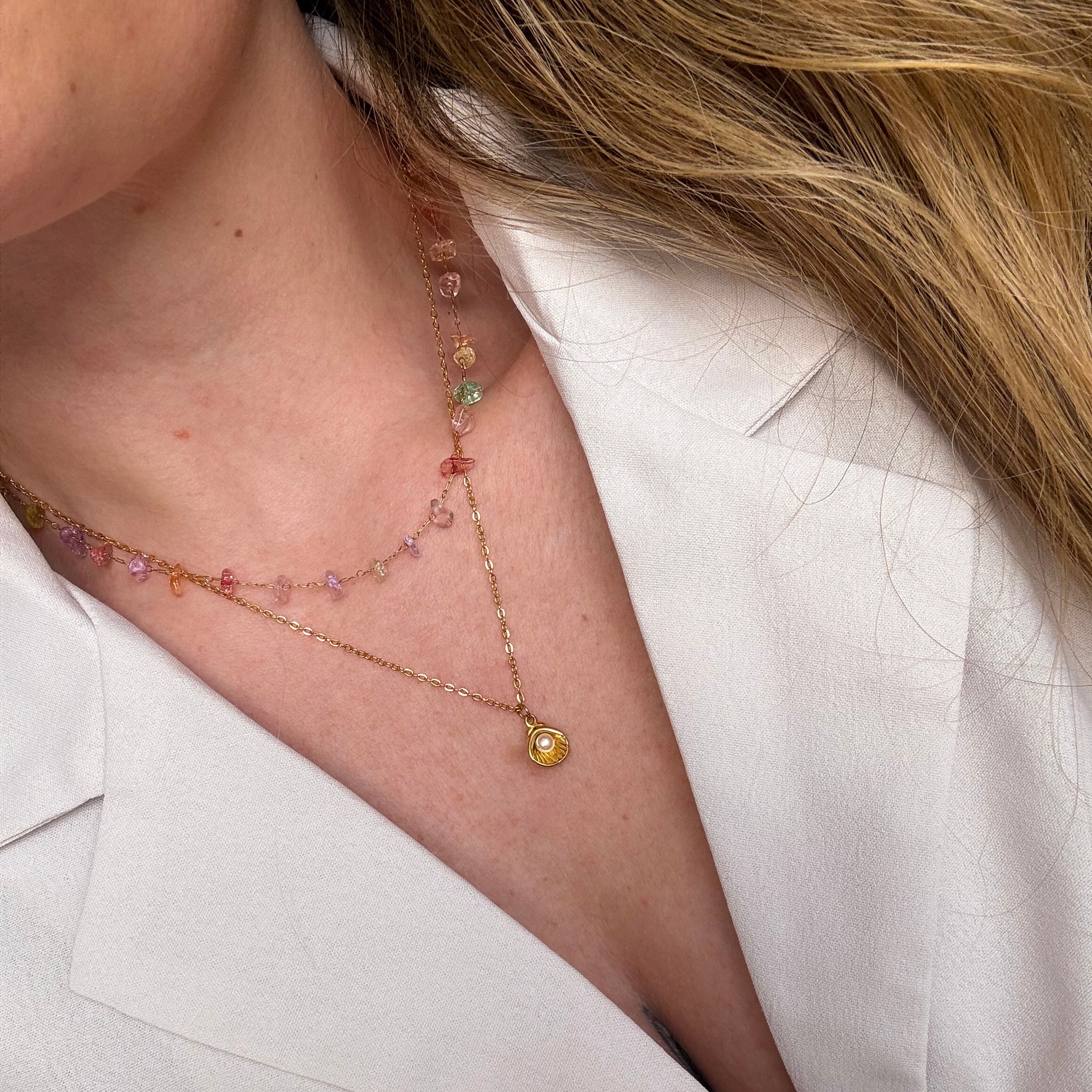 Elevate your look with the Zoe Necklace, a stunning boho-style crystal accessory that adds a touch of summer to your outfit.